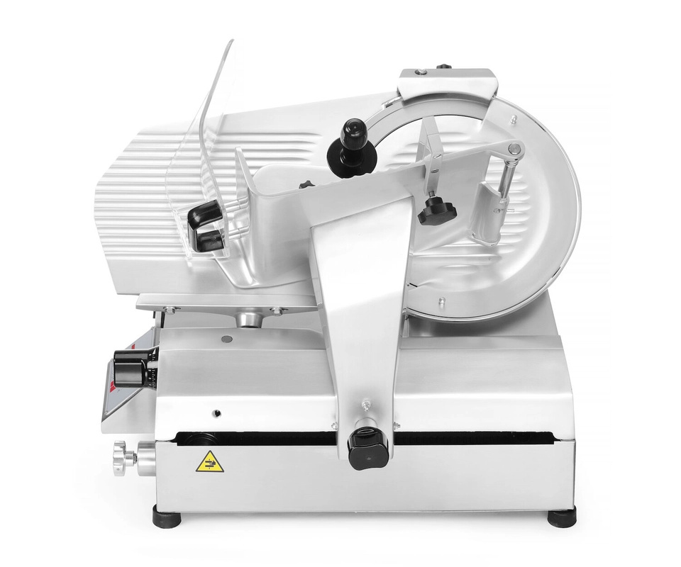 Motor: Putere 370 W, răcit cu aer, cu protecție la supraîncălzire, permite felierea salamurilor tari, brânzeturilor, mezelurilor, precum și a cărnii și peștelui (fără oase/spini). Reglarea grosimii de tăiere: Butonul permite setarea grosimii de tăiere între 0 mm și 16 mm, permițând obținerea unor felii perfecte. Ascuțitor integrat: Asigură eficiența constantă a discului de tăiere, menținând lama într-o stare excelentă pe tot parcursul utilizării. Siguranță: Feliatorul îndeplinește toate cerințele de siguranță pentru echipamentele profesionale. Protecțiile includ blocarea lamei în poziția „0” grosime, protecție împotriva pornirii cu ascuțitorul sau capacul lamei demontate și protecție pentru lamă sub forma unui inel fix. Material: Carcasa este realizată din aluminiu, masa de lucru din tablă de aluminiu presat, iar lamele din oțel inoxidabil, ceea ce asigură durabilitate și ușurință în curățare. Demonatare și curățare: Suportul din oțel poate fi ușor demontat și spălat în mașina de spălat vase, facilitând menținerea igienei. Dimensiunea maximă orientativă a produsului feliat: 310x260 mm