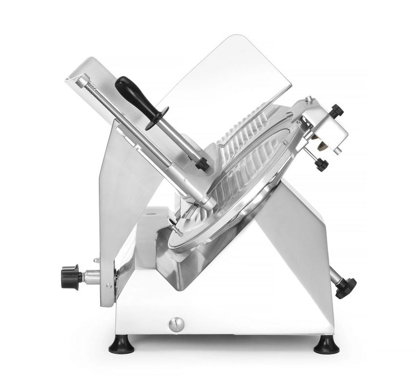 Feliatorul de la HENDI este un dispozitiv profesional italian de tip heavy-duty, ideal pentru felierea cârnaților tari, brânzeturilor, mezelurilor, precum și a cărnii și peștelui (fără oase). Echipat cu un motor puternic și o lamă de înaltă calitate din oțel inoxidabil, asigură feliere precisă și eficientă. Datorită reglajului grosimii de tăiere, dispozitivul permite obținerea de felii perfect subțiri sau mai groase, în funcție de necesități.