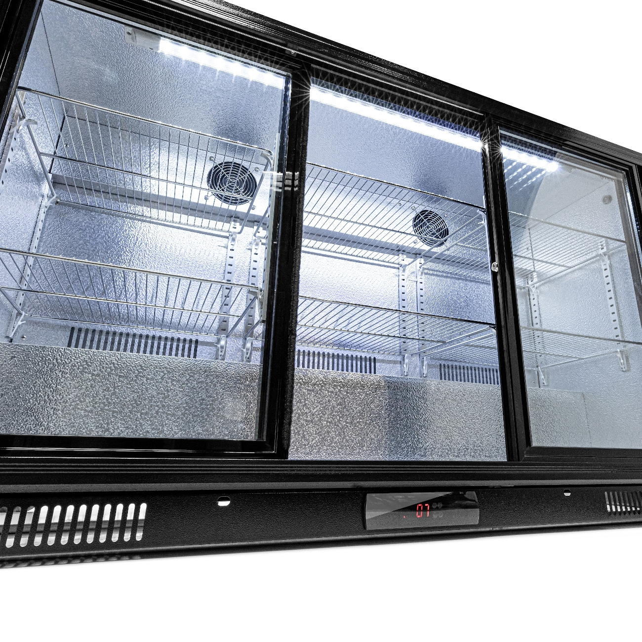 Acest frigider de bar a fost proiectat pentru localuri aglomerate, cum ar fi pub-uri, cluburi de noapte, restaurante și hoteluri. Trei uși glisante facilitează accesul la băuturi chiar și în timpul traficului intens la bar. Carcasa din oțel negru îi conferă un aspect modern care se potrivește cu o varietate de designuri interioare. Interiorul din aluminiu asigură o igienă ușoară, în timp ce ușile cu geam dublu sporesc siguranța și reduc pierderile de energie. Încuietoarea încorporată se va dovedi utilă în locurile în care este necesar să protejați conținutul de persoanele neautorizate.