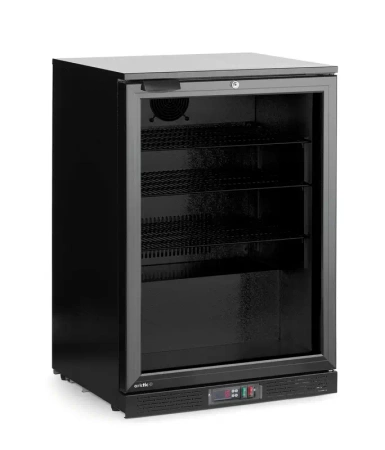 Frigiderul de bar pentru băuturi 105 l ARKTIC 236864 este un aparat frigorific profesional destinat depozitării și expunerii băuturilor. Caracteristicile sale distincte sunt dimensiunile compacte, designul modern negru și eficiența energetică ridicată. Este ideal pentru baruri, restaurante, hoteluri sau magazine, unde accesul rapid la băuturi răcite și prezentarea estetică a produselor sunt esențiale.