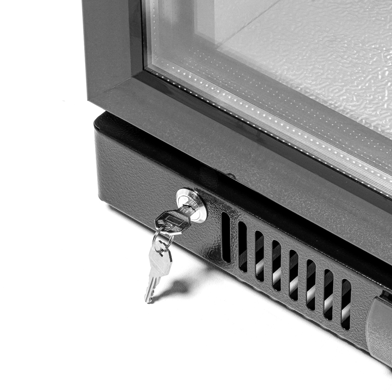 Frigiderul FORGAST FG07701 a fost proiectat pentru exploatare intensă în unități unde contează nu doar estetica, ci mai ales rezistența și confortul utilizării. Carcasa solidă, neagră, din oțel vopsit, este rezistentă la deteriorări mecanice și ușor de întreținut. Interiorul din aluminiu nu doar că arată elegant, dar și facilitează menținerea igienei, esențială în industria gastronomică. Utilizarea sticlei securizate la ușă crește siguranța și durabilitatea aparatului, iar lacătul suplimentar permite protejarea conținutului împotriva accesului neautorizat – deosebit de important pentru minibarele de hotel sau pub-urile cu autoservire.