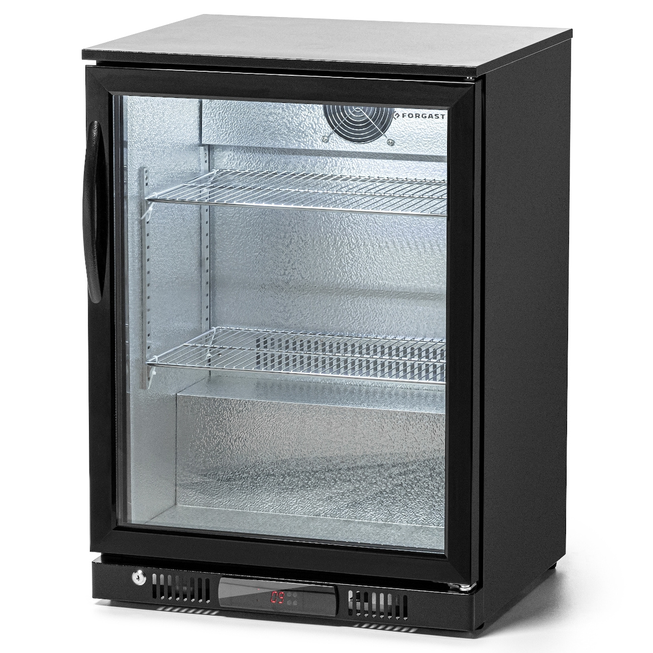 FORGAST FG07701 este un frigider pentru sticle, ideal pentru servirea băuturilor în baruri, pub-uri, restaurante, hoteluri sau la evenimente de catering. Cele trei rafturi reglabile permit depozitarea diverselor tipuri de ambalaje – de la sticle de sticlă la doze și cartoane. Sistemul de răcire statică cu ventilator asigură o temperatură uniformă în tot compartimentul, permițând depozitarea produselor care necesită condiții stabile. Dezghețarea automată ușurează întreținerea dispozitivului, iar iluminarea LED eficientă energetic oferă vizibilitate deplină a conținutului chiar și în lumină slabă. Setul conține toate elementele necesare pentru pornirea imediată a frigiderului, precum și un set de rafturi de înaltă rezistență.