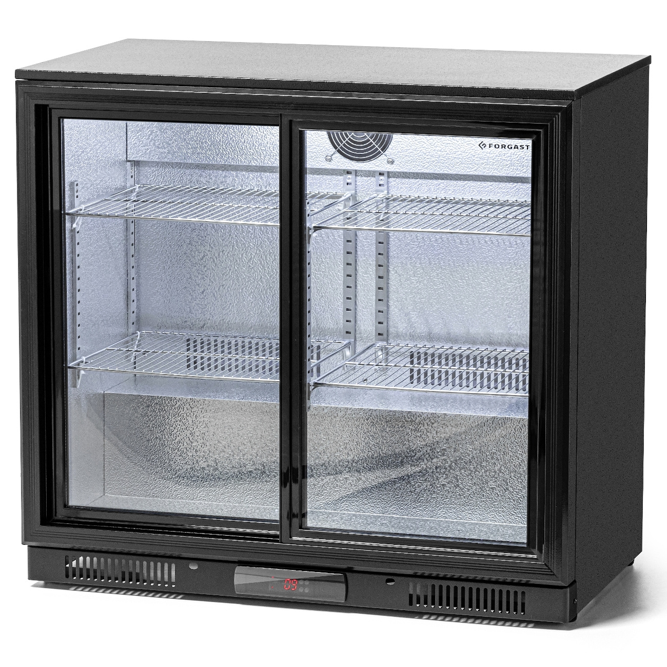 Frigiderul de bar pentru băuturi cu 2 uși, uși glisante 208 l FORGAST FG07702 este un echipament frigorific profesional destinat depozitării băuturilor în unități de alimentație publică, precum baruri, restaurante sau hoteluri. Echipat cu uși glisante cu geam dublu și carcasă din oțel negru, asigură siguranța produselor depozitate și se integrează perfect în interioarele moderne. Construcția compactă și capacitatea de 208 litri fac din acest frigider soluția ideală pentru spațiile cu suprafață limitată, unde accesul rapid la băuturi reci este esențial.