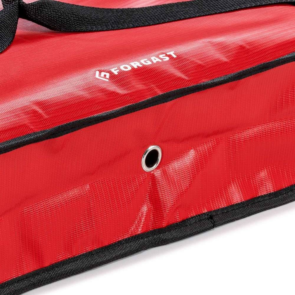 Geanta Forgast se remarcă prin construcția moale și culoarea roșie intensă, care îi crește vizibilitatea și recunoașterea în timpul livrărilor. Flexibilitatea genții o face comodă pentru utilizarea zilnică – poate fi ușor pliată când nu este necesară. Culoarea roșie nu doar subliniază aspectul profesional, ci și facilitează identificarea genții printre alte accesorii gastronomice. Geanta este ideală pentru transportul pizzei către clienți individuali, companii sau la evenimente în aer liber.