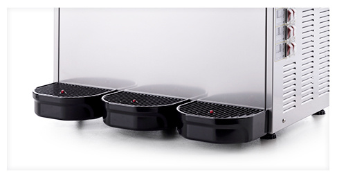 - Funcționare independentă a recipientelor – Fiecare dintre cele trei recipiente poate funcționa în moduri diferite, permițând prepararea simultană a diferitelor băuturi înghețate sau sucuri. Această soluție permite reacția rapidă la cerințele clienților, în special în locațiile cu o ofertă variată.