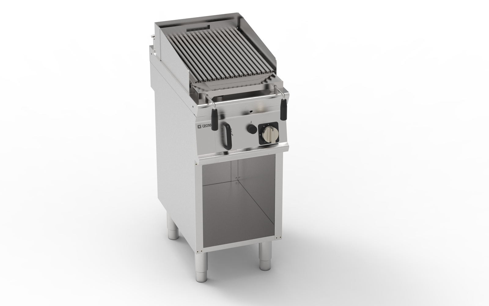 Grătar pe bază deschisă cu gaz lava cu 8 kW și dimensiuni 40x70x90 cm de Tecnoinox seria Tecno74 este o combinație de modernitate și fiabilitate, dedicată restaurantelor și hotelurilor medii și mari. Creat la cele mai înalte standarde de calitate, acesta nu numai că oferă performanțe excepționale, dar are grijă și de detaliile care ușurează munca zilnică în bucătărie.