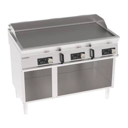 Plita grill dispune de trei zone de încălzire independente, fiecare dintre ele putând fi controlată individual. Controlul electronic permite reglarea precisă a temperaturii în intervalul de la 70°C la 310°C, iar datorită utilizării rezistențelor blindate din oțel inoxidabil, căldura este distribuită uniform pe întreaga suprafață a plitei.