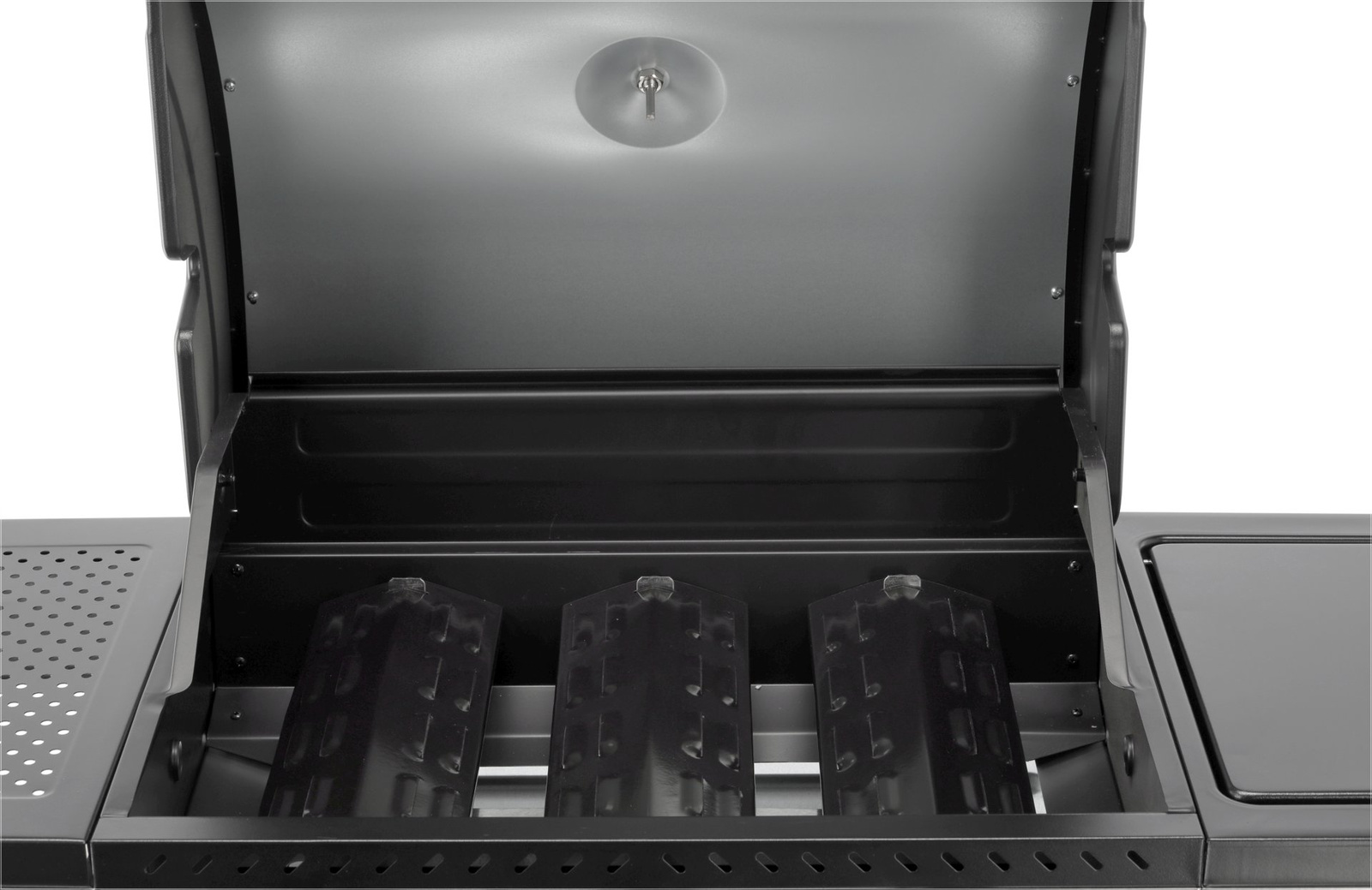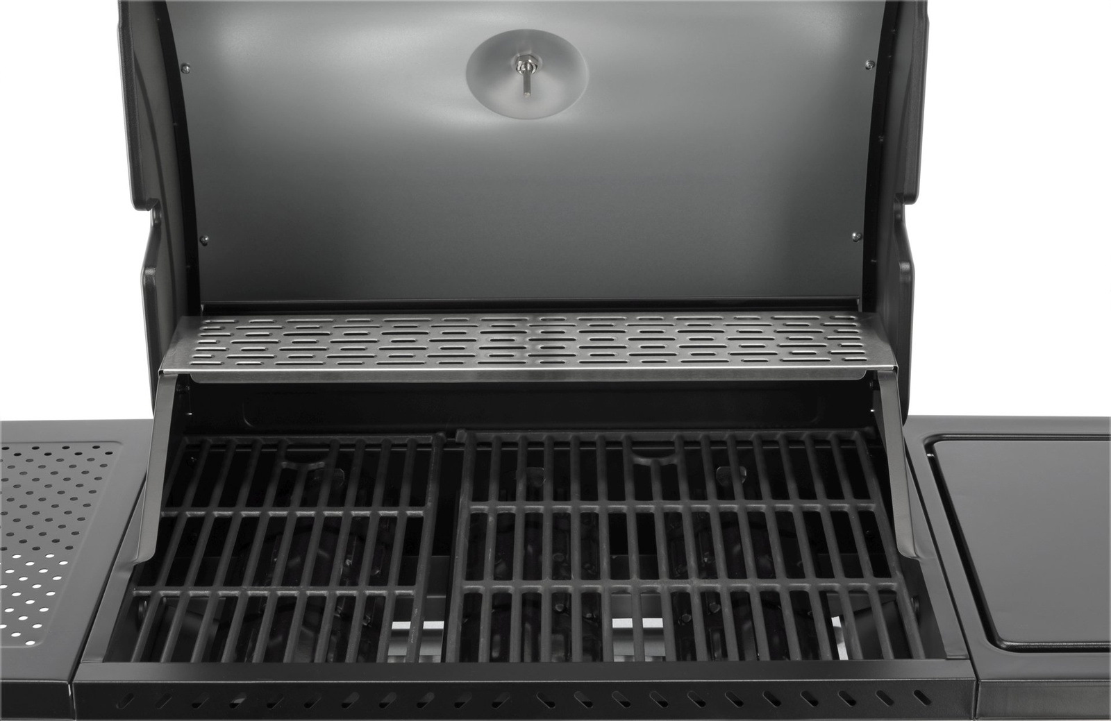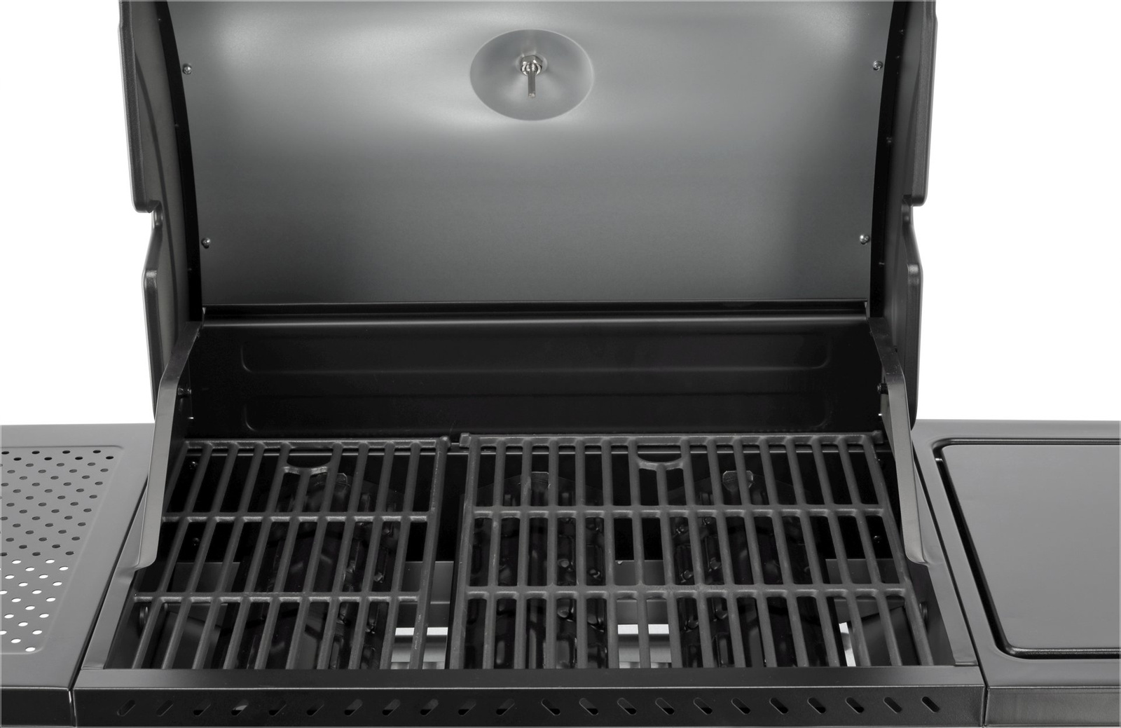 Capacul cu termometru accelerează procesul de grătar și protejează de vânt, în timp ce fumul de la mâncare adaugă aromă. Încălzitorul din oțel inoxidabil de înaltă calitate și aprinzătorul piezoelectric amplasat central pe panoul de comandă asigură fiabilitate și ușurință în utilizare. Grătarul este echipat cu patru roți pivotante cu frână, ceea ce îl face ușor de transportat.