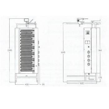 Gyros (kebab) electric până la 80 kg POTIS E-4 este un grill vertical profesional destinat preparării unor cantități mari de carne, deosebit de popular în bucătăria grecească și cea din Orientul Apropiat. Aparatul se remarcă prin eficiență ridicată, construcție solidă din oțel inoxidabil și posibilitatea de a încărca până la 80 kg de carne într-o singură tranșă. Este ideal pentru restaurante, localuri de kebab și puncte gastronomice cu trafic intens.