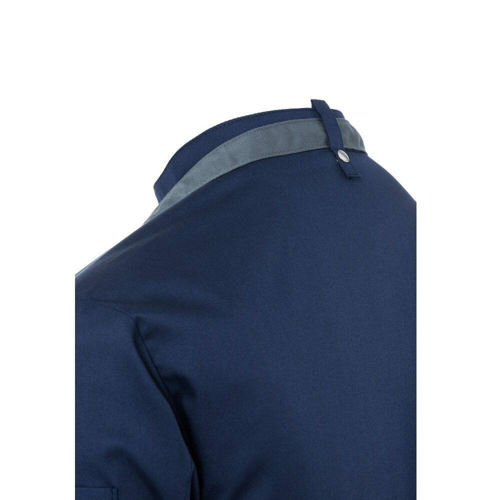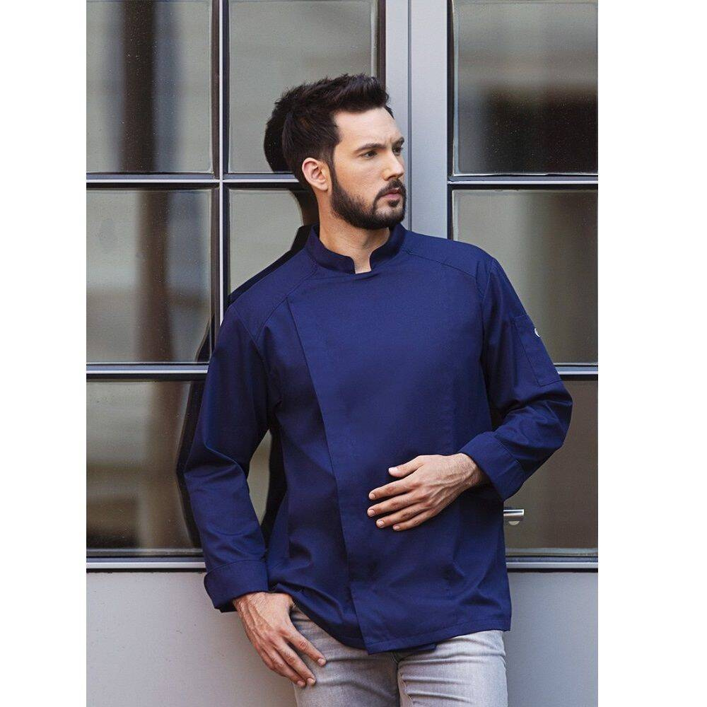 Hanorac de bucătar Noah pentru bărbați de la Karlowsky. Albastru marin. Fabricat în 50% poliester și 50% bumbac. Țesătură diagonală. Hanorac elegant de bucătar pentru bărbați cu panou ascuns cu fermoar. Fabricat din material foarte ușor, ideal pentru condiții de căldură. Confort optim la purtare datorită croielii ajustate. Partea din spate a gulerului are o curea practică pentru șorț pentru a preveni alunecarea șorțului. Manșete cu crăpătură. Buzunar cusut pe mâneca stângă cu compartiment pentru stilou. Potrivit pentru spălare industrială și curățare uscată. Poate fi albit. Mărimi disponibile de la 46 la 64.