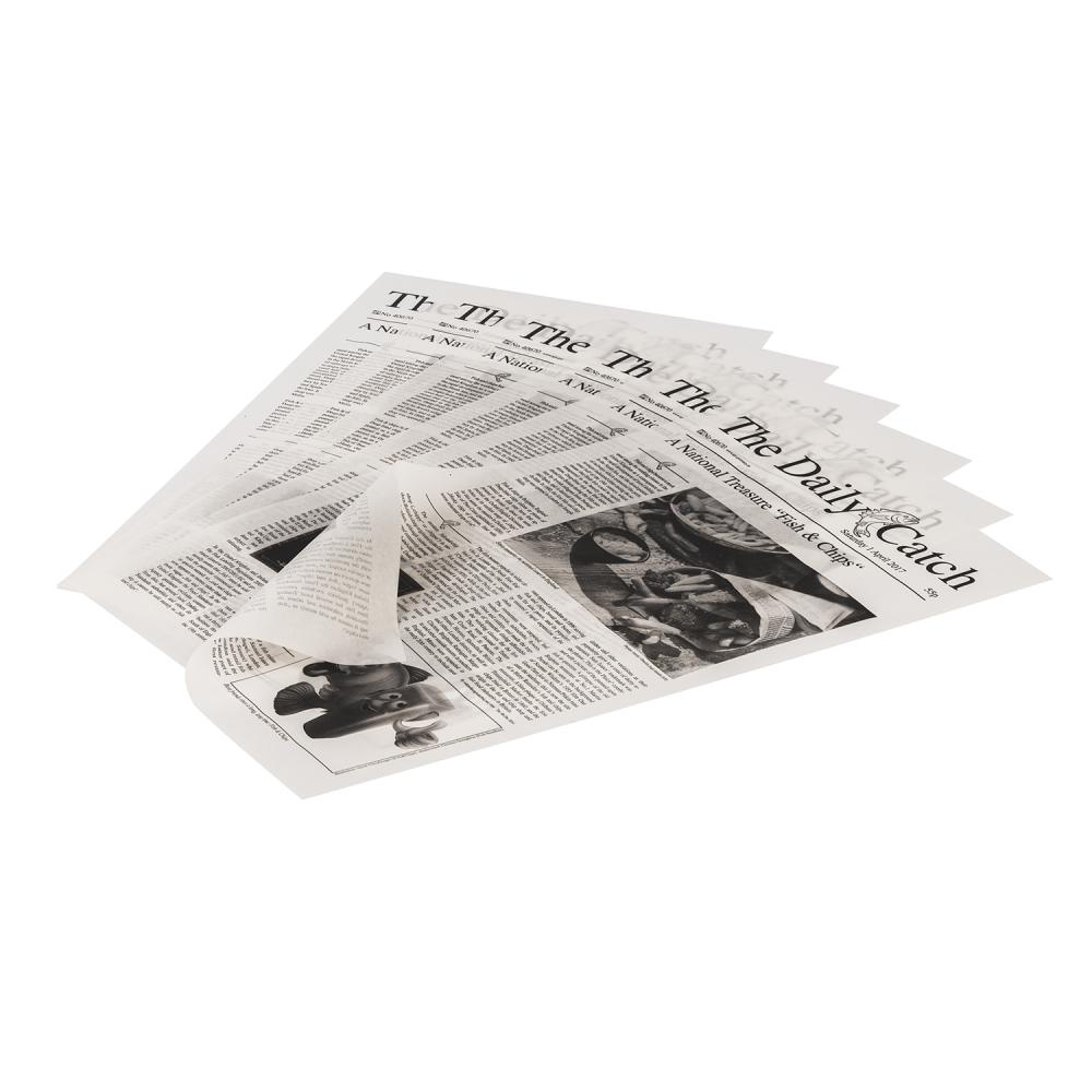 Produsul este fabricat din hârtie pergament de înaltă calitate, care este rezistentă la grăsime și nu permite trecerea umezelii. Imprimeul în stil ziar adaugă originalitate și ajută la evidențierea localului în fața concurenței. Hârtia este ușor de utilizat, nu se sfărâmă și nu se rupe în contact cu preparatele fierbinți.