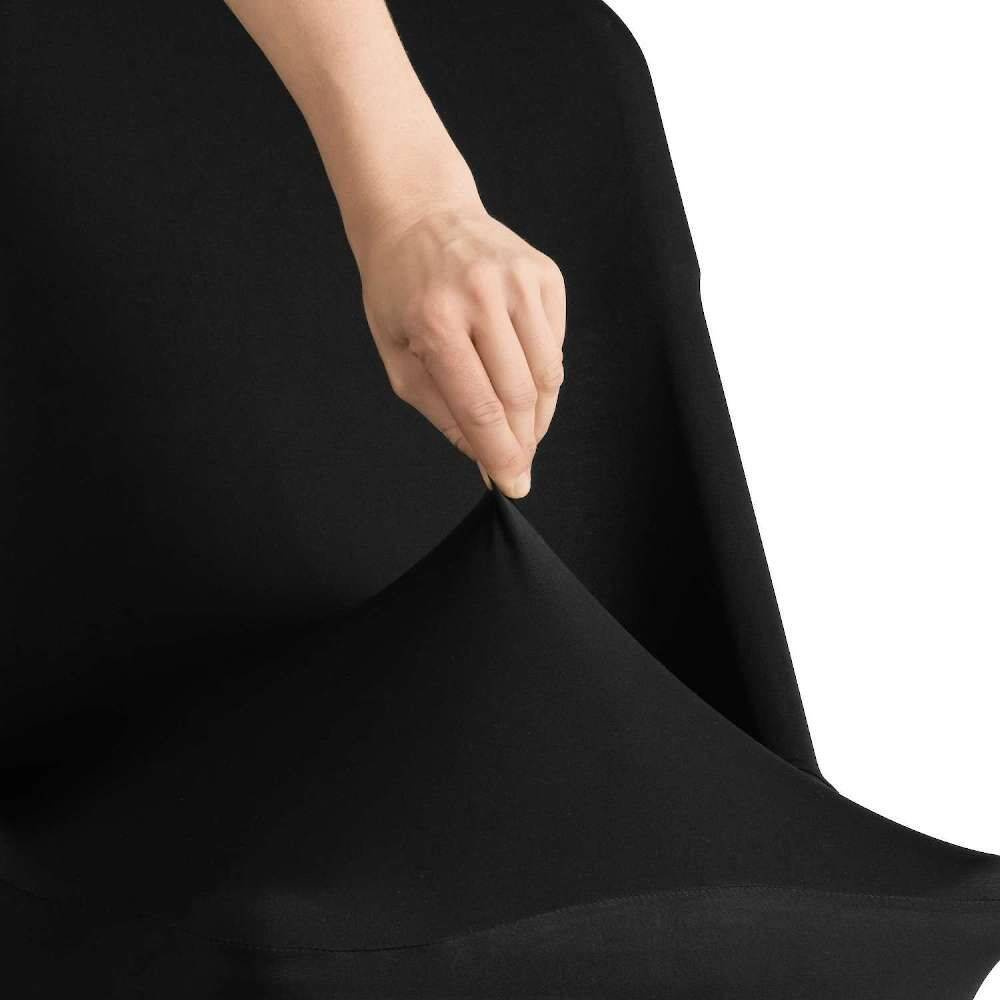 - Material elastic – husa este confecționată dintr-un amestec de 95% poliester și 5% elastan, oferind o potrivire excelentă pe forma scaunului și rezistență la întindere. Astfel, se pune și se scoate ușor, iar materialul nu își pierde forma nici la utilizare frecventă.