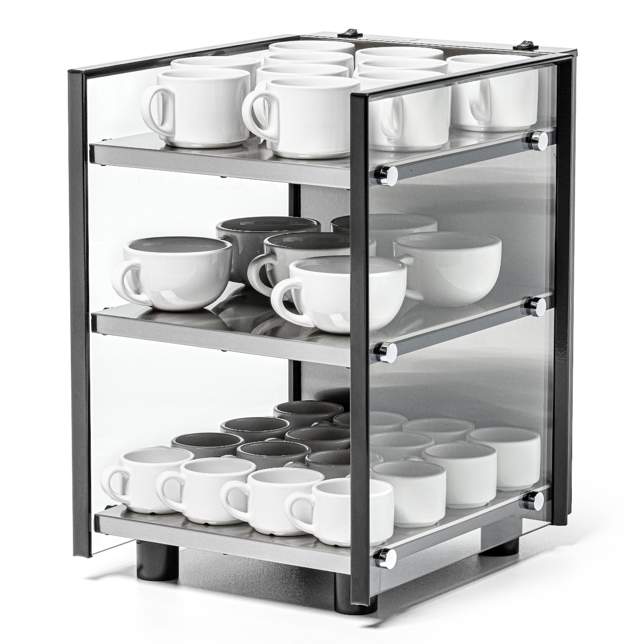 - Trei rafturi - Permite depozitarea și încălzirea mai multor căni în același timp, sporind funcționalitatea aparatului.