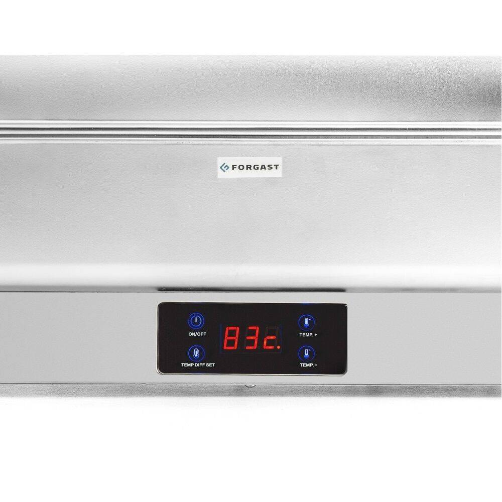 Încălzitorul electric de masă Forgast FG03115 este un aparat de catering profesional care permite păstrarea alimentelor la temperatura potrivită pentru o perioadă lungă de timp. Se distinge prin capacitatea sa mare 9 litri și realizate din oțel inoxidabil, care asigură durabilitatea și rezistența la utilizarea intensivă. Este alegerea perfectă pentru restaurante, hoteluri sau companii de catering unde fiabilitatea și eficiența sunt importante atunci când se servesc alimente calde.