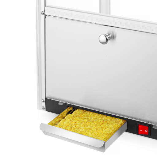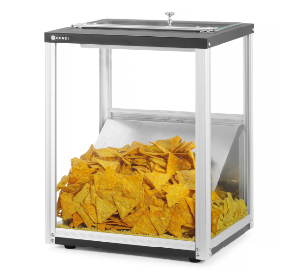 Încălzitor de nachos HENDI model 282779 este aparatul ideal pentru orice local care dorește să servească clienților săi nachos crocante sau popcorn cald. Datorită capacității sale de a menține o temperatură constantă de până la 55°C, nachos rămân crocante și gustoase pentru mai mult timp. Este un dispozitiv indispensabil pentru restaurante, baruri, cinematografe și evenimente de toate tipurile.
