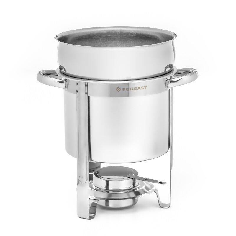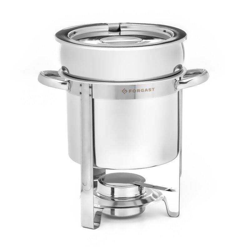 Încălzitorul de masă FORGAST FG03111 este dedicat bucătăriilor profesionale, bufetelor hoteliere, restaurantelor și firmelor de catering. Datorită capacității mari, este ideal pentru servirea supelor și cremelor la nunți, conferințe sau petreceri în aer liber. Încălzirea pe combustibil permite utilizarea liberă a dispozitivului în teren, fără necesitatea conectării la curent electric, ceea ce va fi apreciat de organizatorii de evenimente în aer liber și de catering mobil.