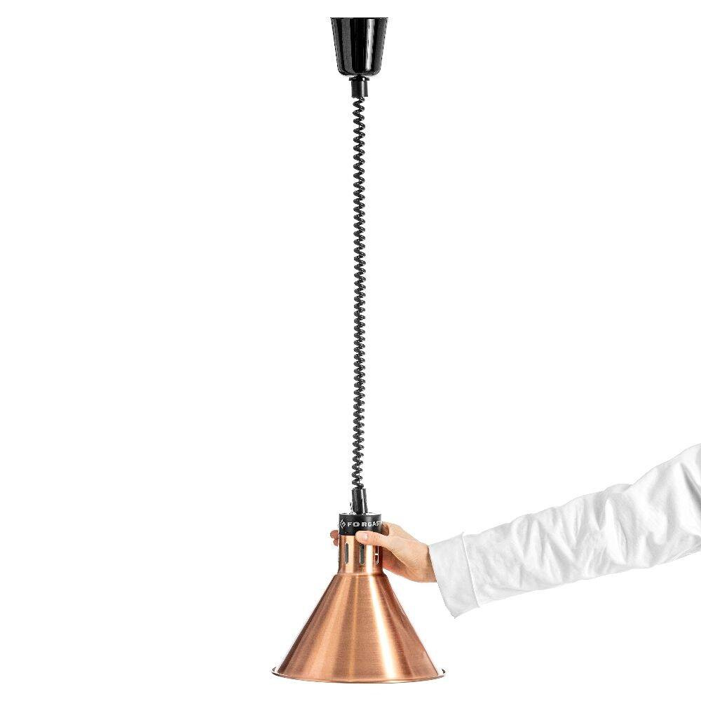 Lampa de încălzire a alimentelor din cupru - tip B FORGAST FG03343 este un dispozitiv profesional conceput pentru a menține temperatura alimentelor în locuri precum restaurante, case de nunți sau companii de catering. Are un finisaj elegant din cupru, reglare largă a înălțimii și funcționare eficientă din punct de vedere energetic. Lampa protejează eficient alimentele preparate de răcire, asigurând temperatura corectă de servire pentru o perioadă mai lungă de timp.