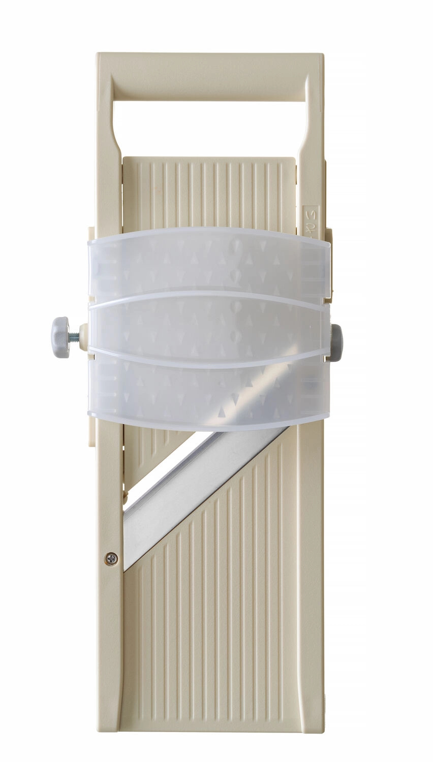 HENDI Shōgun Mandolină japoneză 将軍 este un produs de calitate premium, fabricat în Japonia. Oferă o tăiere precisă și uniformă, comparabilă cu cea a cuțitelor profesionale. Echipat cu o lamă plată încorporată și 3 lame zimțate interschimbabile pentru felierea, înțepenirea și decorarea legumelor.