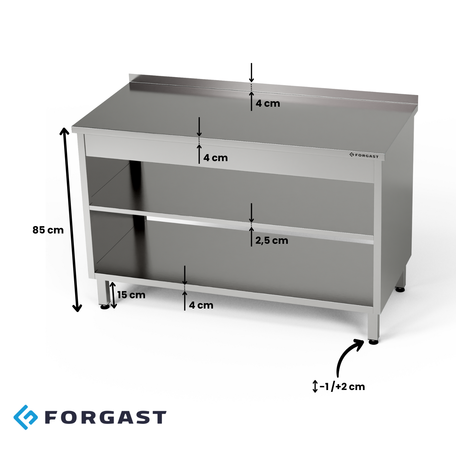 | Masă de lucru cu 2 rafturi din oțel inoxidabil 150x70x85 cm | FORGAST |