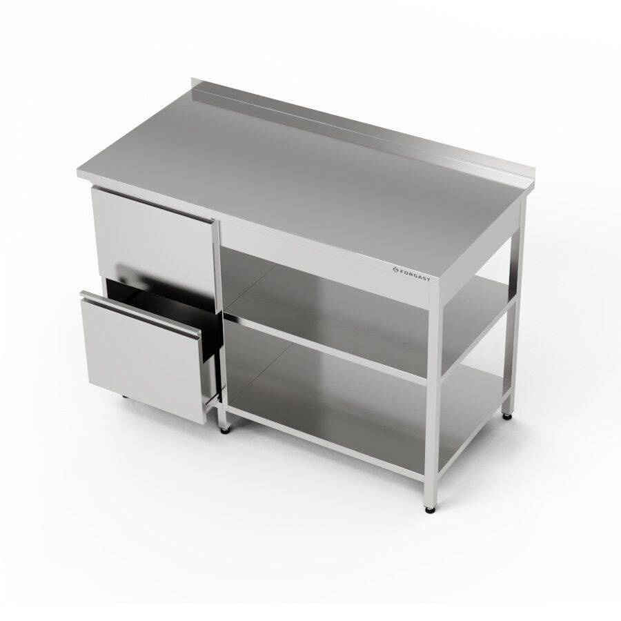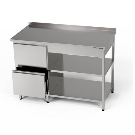 | Masă de lucru din oțel inoxidabil cu bloc de sertare și două rafturi 160x60x85 cm | FORGAST |