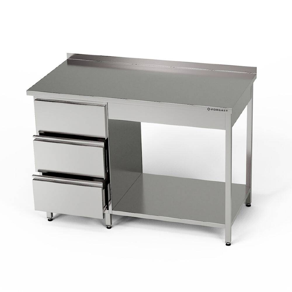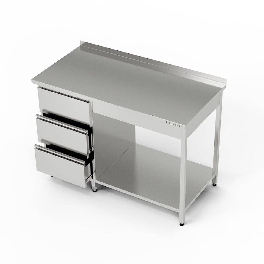 Masă de lucru din oțel inoxidabil cu bloc de sertare și raft 220x70x85 cm | FORGAST