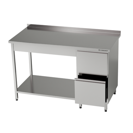 Masă de lucru din oțel inoxidabil cu bloc de sertare și raft inferior 130x60x85 cm | FORGAST
