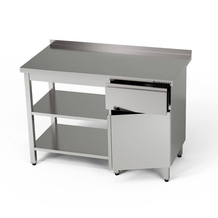 Masă de lucru din oțel inoxidabil cu dulap, sertar și 2 rafturi 100x70x85 cm | FORGAST