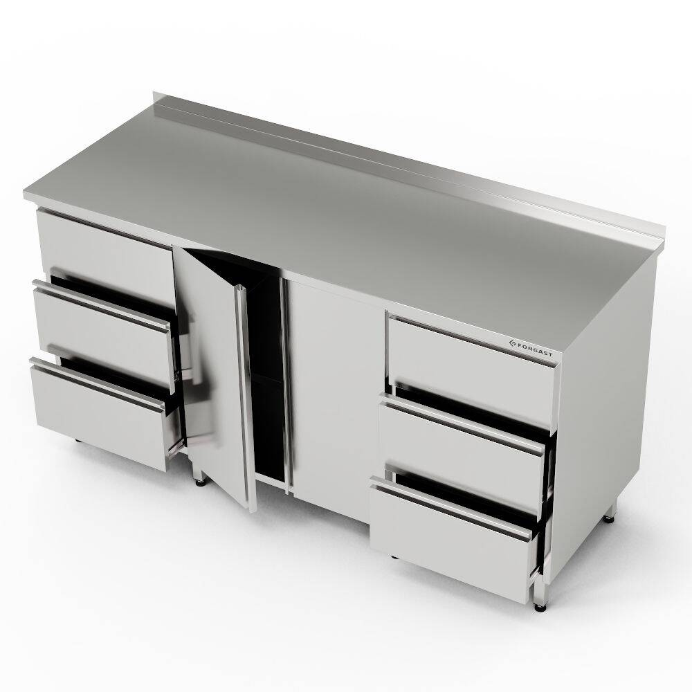 Masă de lucru din oțel inoxidabil cu dulap și 2 blocuri de 3 sertare 190x60x85 cm | FORGAST