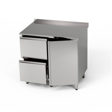 Masă de lucru 100x60x85 cm cu bloc cu 2 sertare și dulap cu uși cu deschidere. Raft în interiorul dulapului. Dulapul este situat pe partea dreaptă. Dimensiunile sertarului în blocul cu 2 sertare: 44x46.5x44/18 cm.