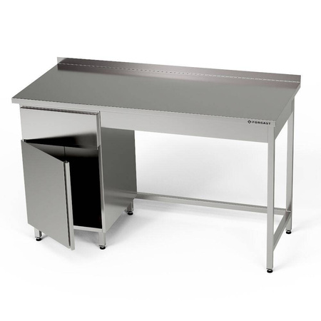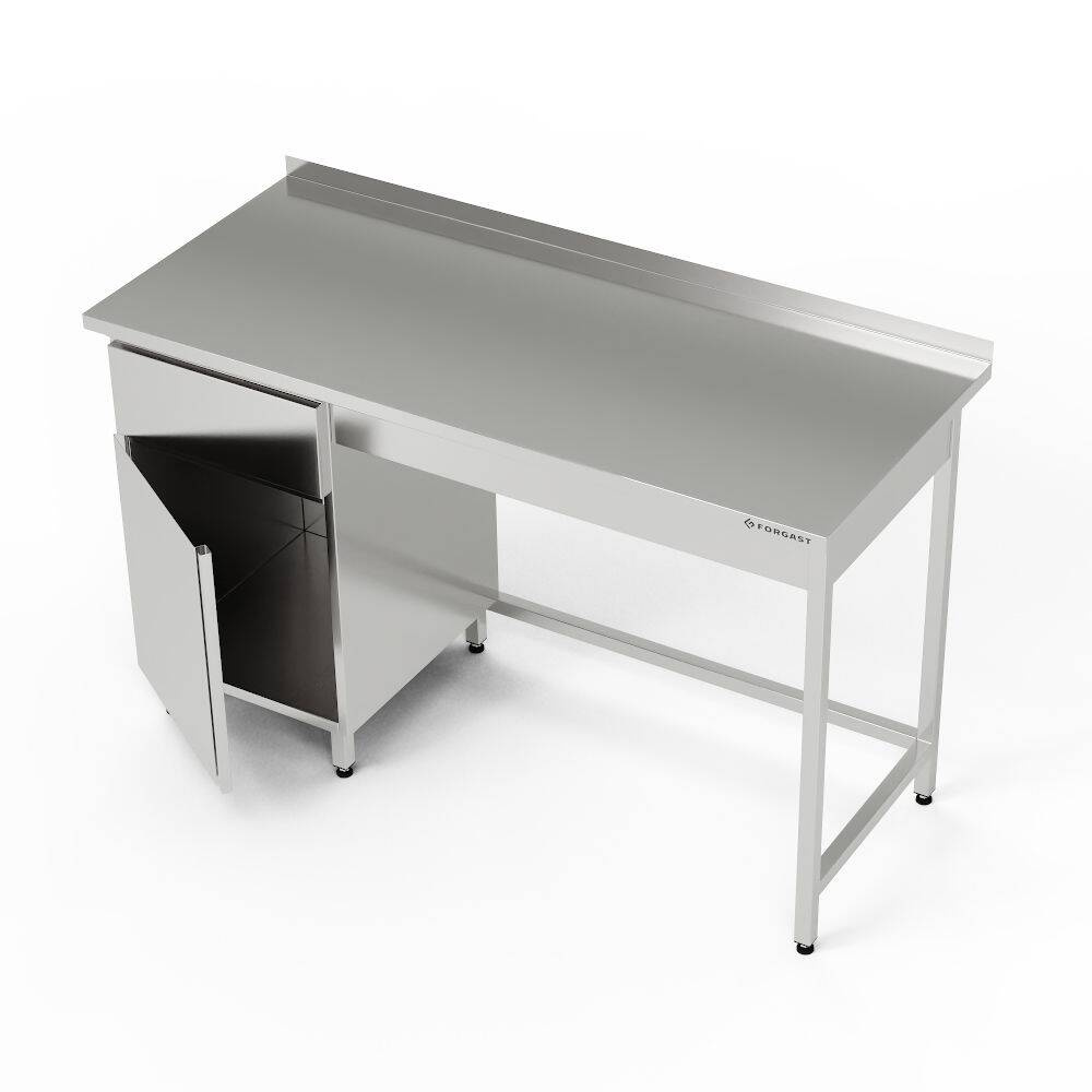 Masă de lucru 220x70x85 cm cu dulap cu uși și sertar. Dulap cu sertar, 40 cm lungime și 70 cm lățime (adâncime), situat pe partea stângă. Raft în interiorul dulapului. J4 masă din oțel inoxidabil.