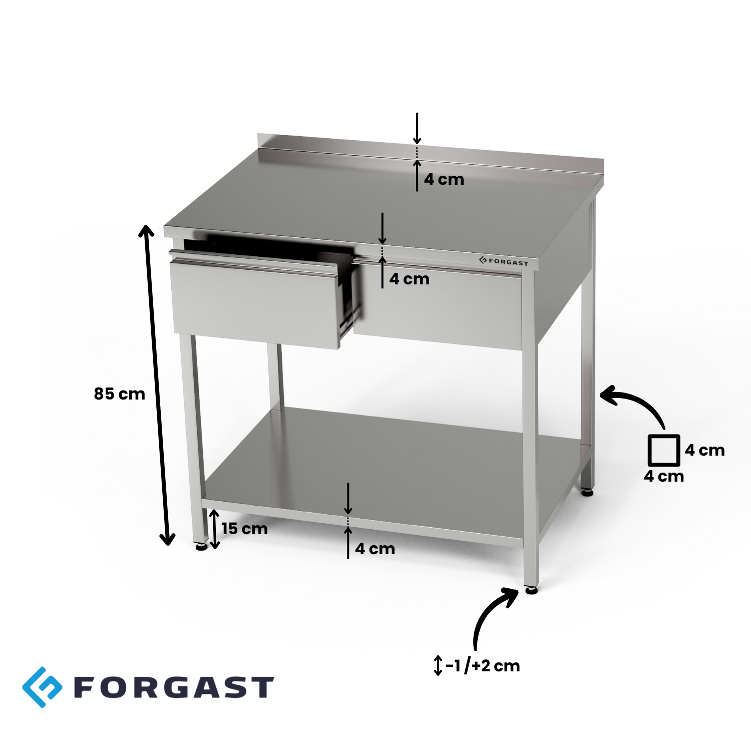 | Masă de lucru din oțel inoxidabil cu sertare și raft inferior 120x60x85 cm | FORGAST |