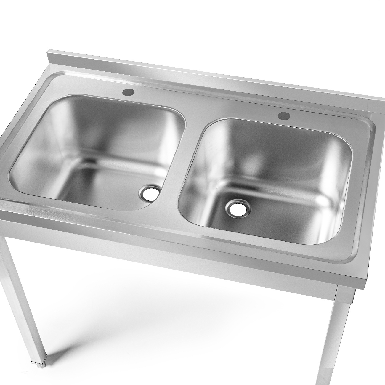 Masă din inox cu chiuvetă cu 2 compartimente 100x60x85 asamblată | FORGAST FG15335