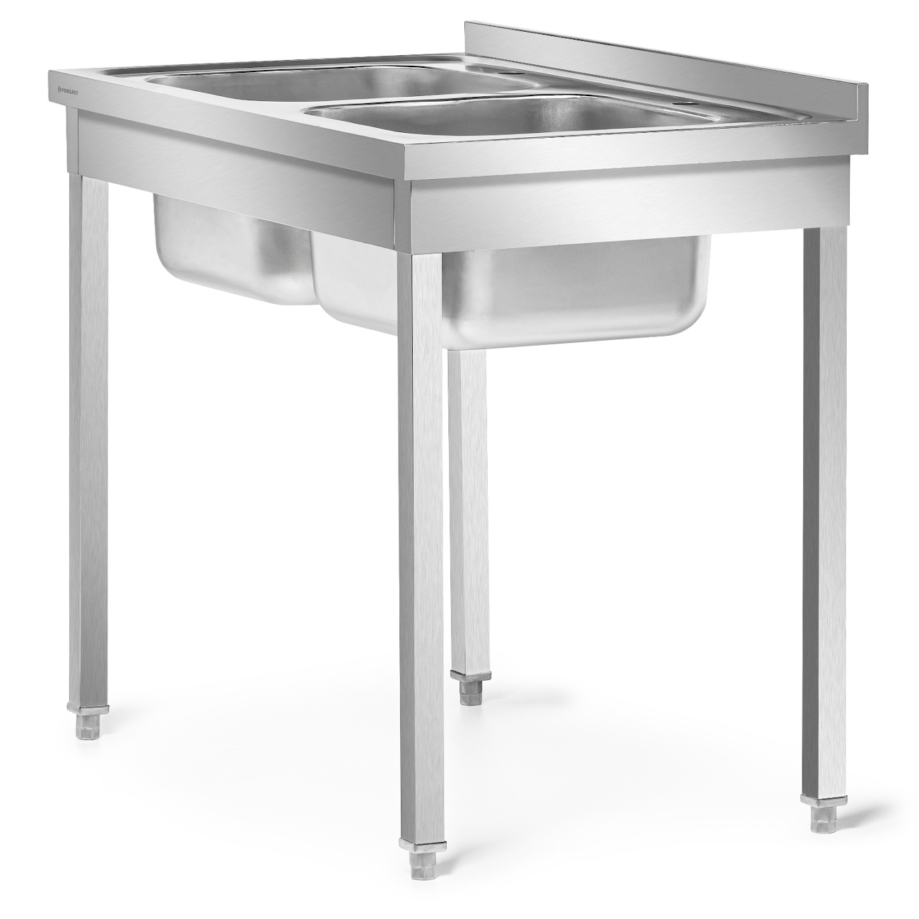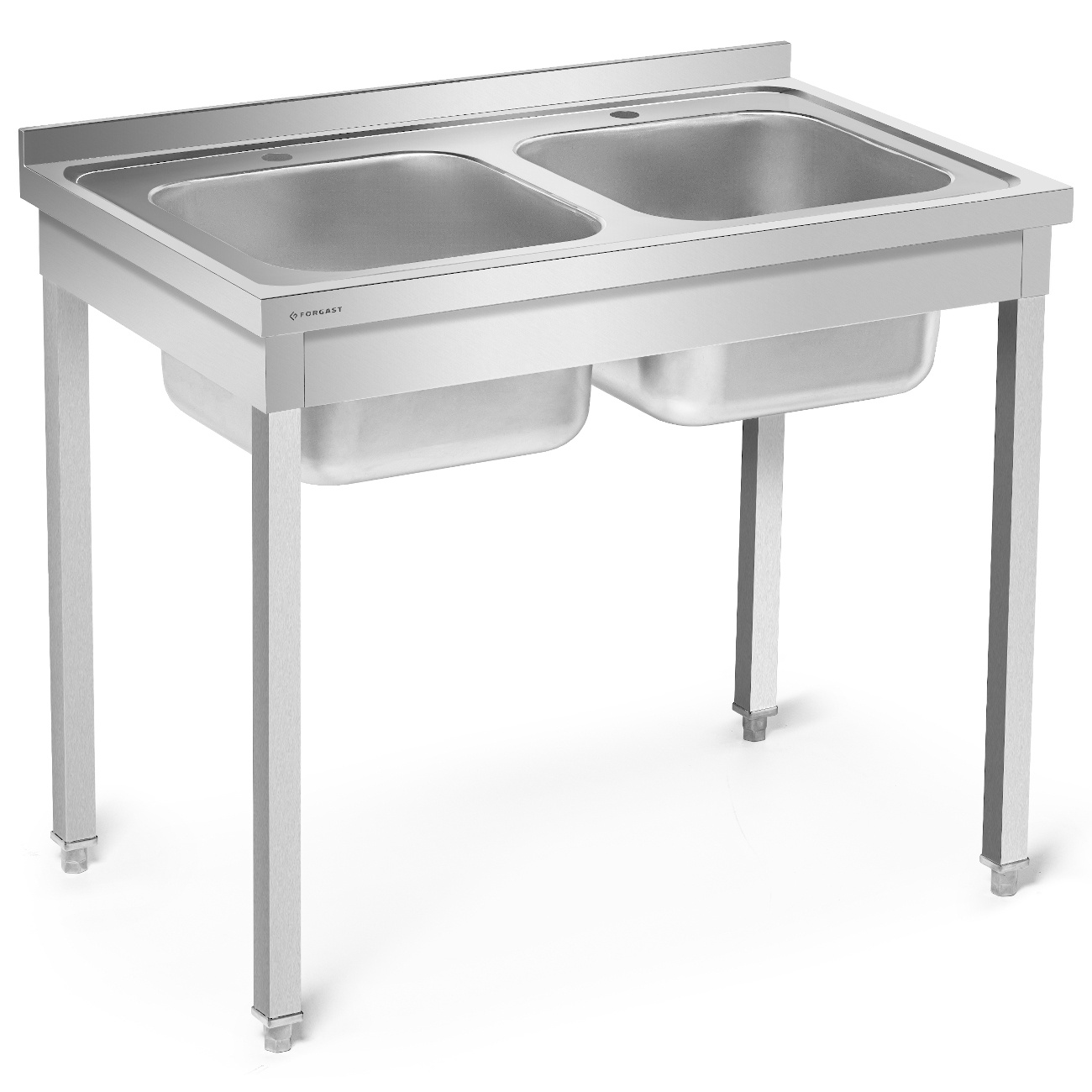 Masă din inox cu chiuvetă cu 2 compartimente 100x60x85, asamblată, FORGAST FG15335