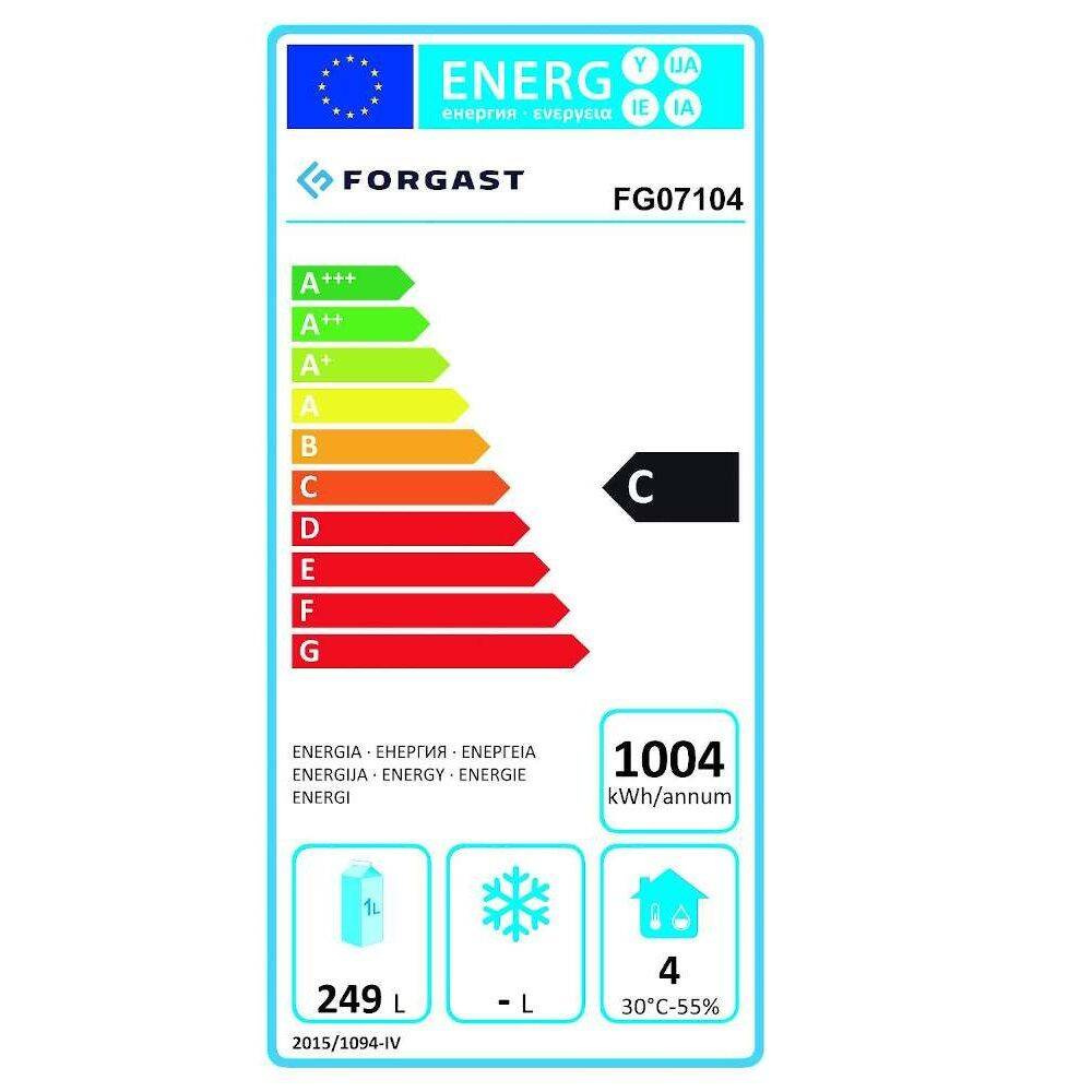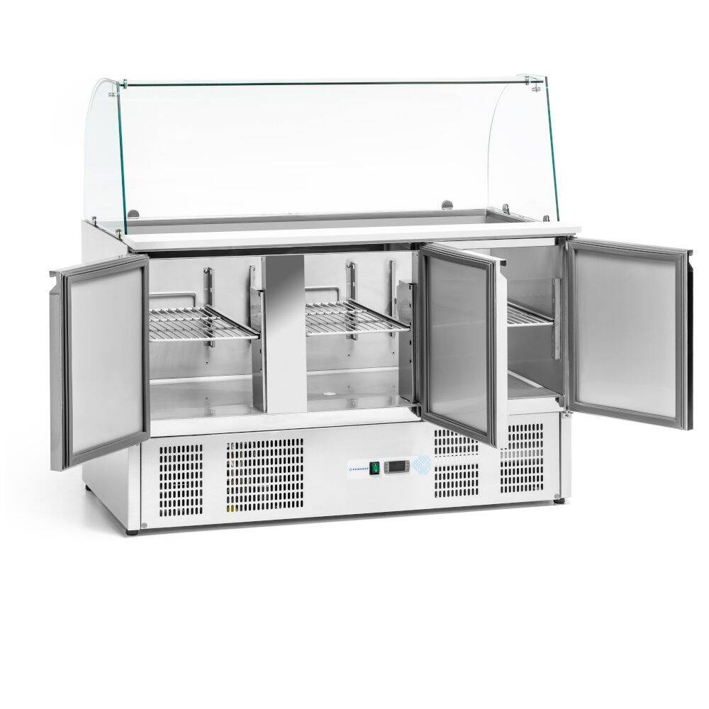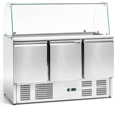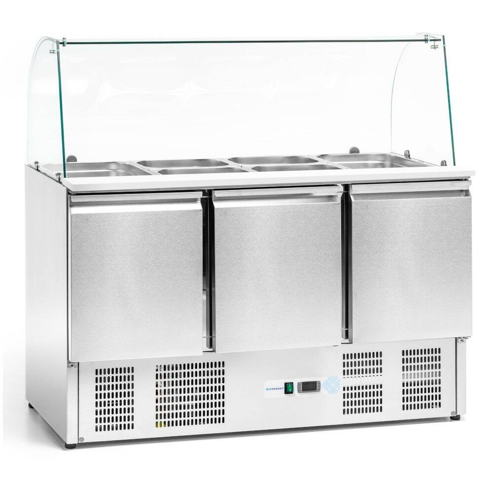 Descriere Masa frigorifică cu 3 uși pentru salate, 400 l, cu suprastructură de sticlă FORGAST FG07104