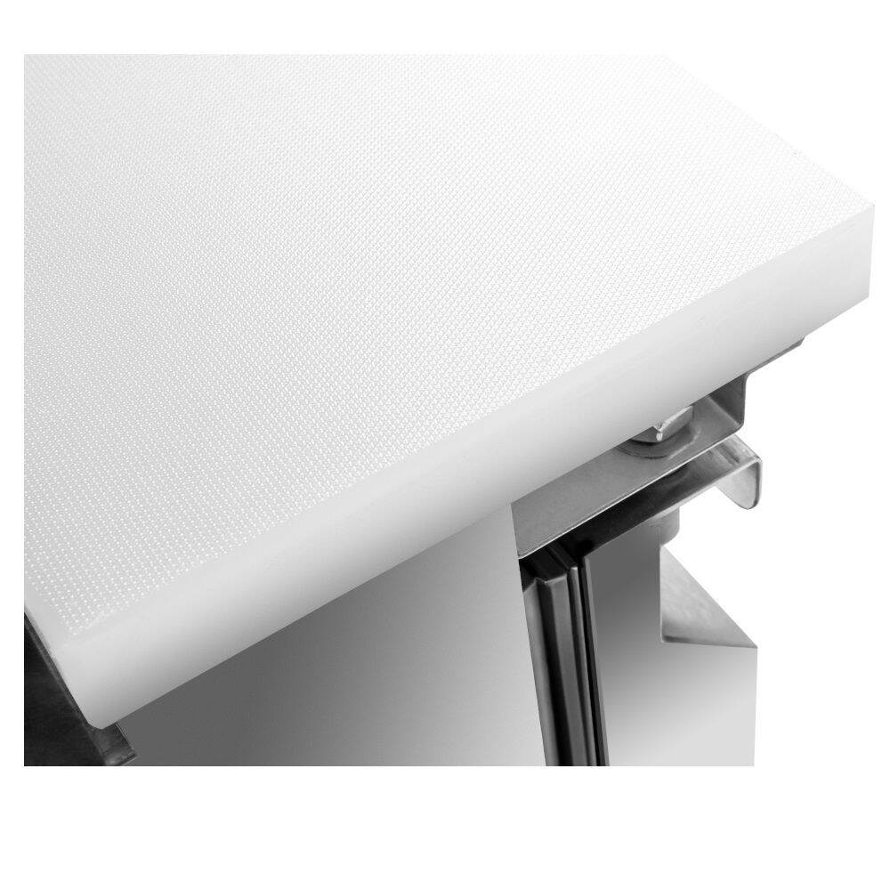 Setul include trei rafturi și o garnitură de ușă ușor de scos, facilitând menținerea curățeniei. Mânerul profilat pe întreaga lungime a ușii permite deschiderea și închiderea comodă a mesei chiar și în timpul lucrului intens. Este important de reținut că recipientele GN nu sunt incluse – acestea trebuie achiziționate separat, în funcție de necesități.