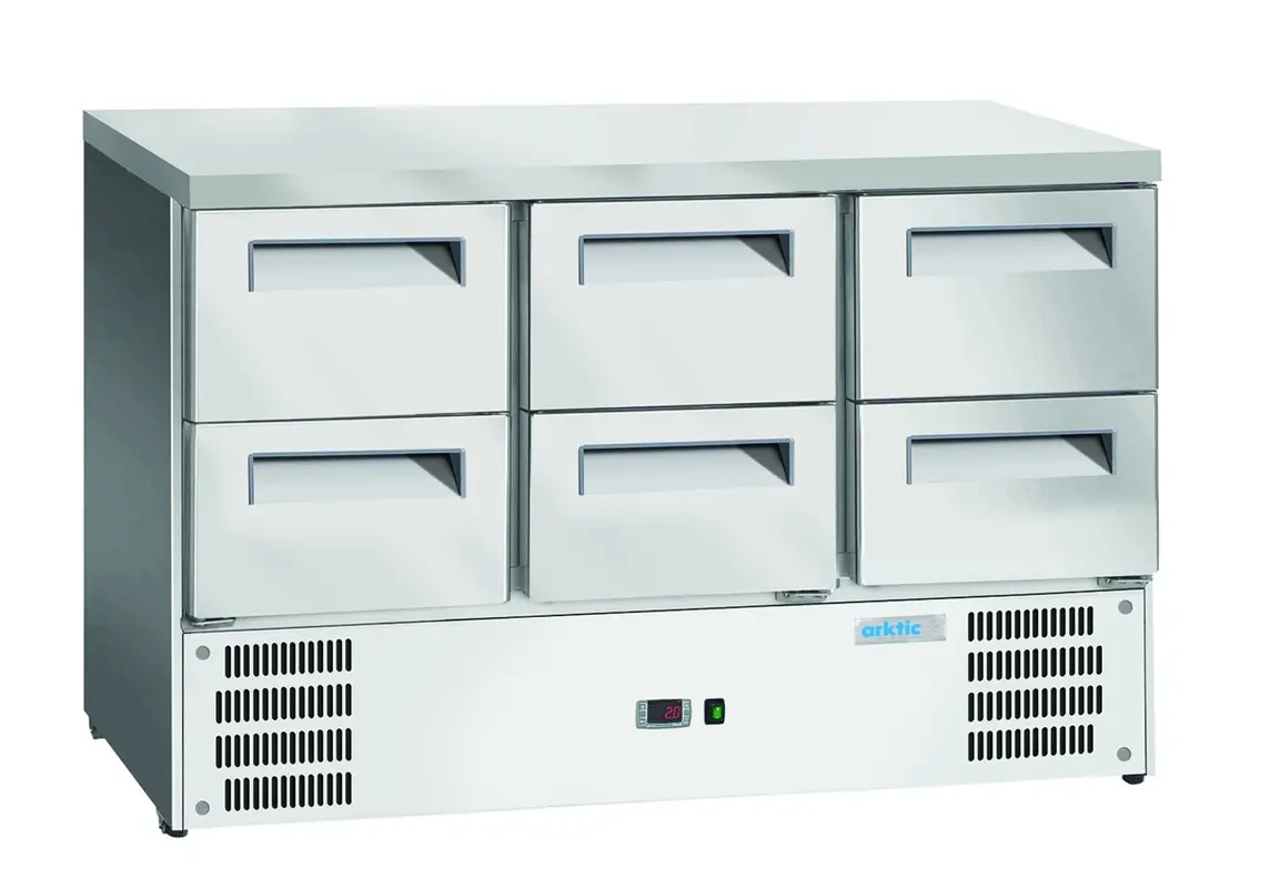 | Masă frigorifică cu 6 sertare GN 1/1, 368 l, 136x70x85.5 cm, 3.9 kWh/zi | ARKTIC 236772 |