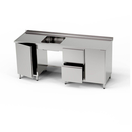 Masă inoxidabilă cu chiuvetă cu 1 vas, dulap și bloc de sertare și dulap 190x60x85 cm FORGAST