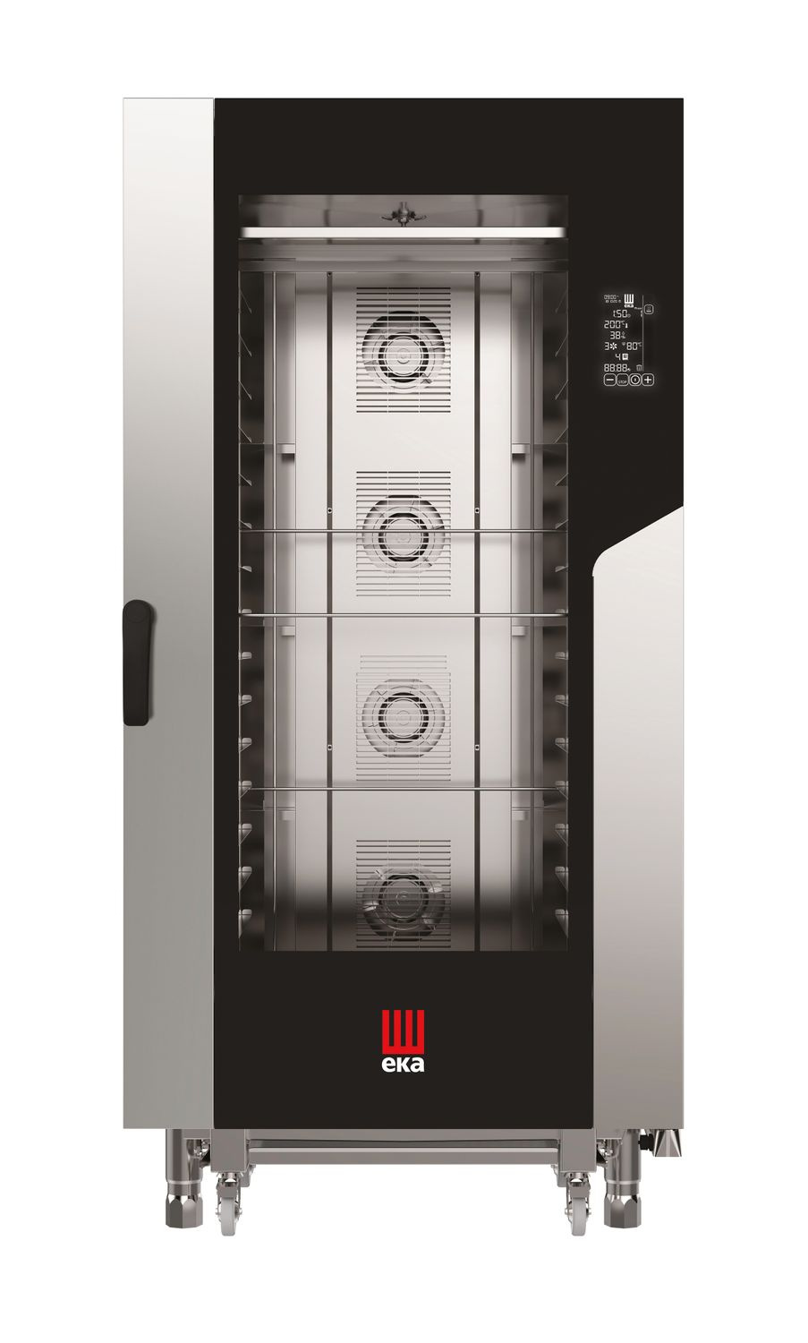 Ușile cu geam dublu au un sistem de blocare a deschiderii pentru a proteja operatorul de mișcări necontrolate. Sigiliul ușii este fabricat din silicon durabil, ușor de înlocuit de către dvs. Canalizare sub ușă. Iluminare cu LED-uri în cameră. Carcasa izolată a cuptorului economisește energie electrică. Camera, precum și carcasa cuptorului sunt fabricate din oțel inoxidabil. Aragazul poate fi nivelat cu ajutorul picioarelor reglabile. Este necesară racordarea la electricitate, apă tratată și canalizare.