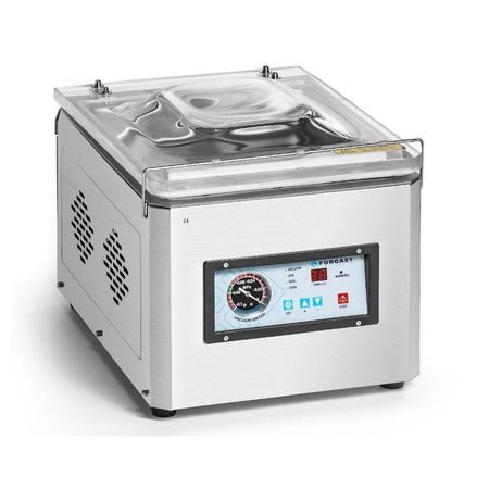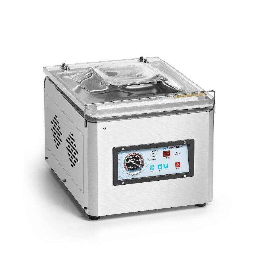 Ambalatorul Forgast FG03430 este proiectat pentru utilizare intensivă în bucătării profesionale și fabrici de prelucrare a alimentelor. Carcasa metalică robustă protejează interiorul de deteriorări mecanice, iar panoul de control este ușor de citit și intuitiv de utilizat. Un capac transparent al camerei permite inspectarea vizuală a procesului, iar un indicator al nivelului de vid arată starea curentă de extragere a aerului. Kitul nu include pungi de ambalare - acestea trebuie achiziționate separat, permițându-vă să alegeți dimensiunea optimă și tipul de ambalaj în funcție de nevoile dvs.