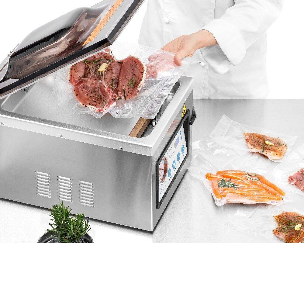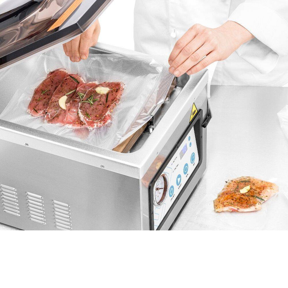 Masina de ambalat în vid FORGAST FG03426 a fost proiectată pentru o utilizare ușoară și o funcționalitate ridicată. Capacul transparent al camerei permite monitorizarea permanentă a procesului de ambalare, iar indicatorul de vid clar permite monitorizarea precisă a nivelului de vid atins. Panoul de control intuitiv oferă posibilitatea reglării line a timpului de sigilare și a nivelului de vid, ceea ce permite ajustarea individuală a parametrilor pentru fiecare tip de produs. Setul include accesorii compatibile, precum pungi pentru vid sau recipiente, care măresc suplimentar posibilitățile de utilizare ale dispozitivului.