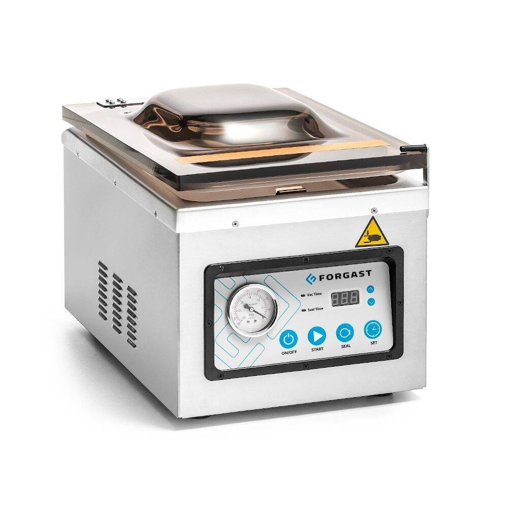 Masina de ambalat în vid cu cameră FORGAST FG03426 este un dispozitiv profesional destinat prelungirii durabilității produselor alimentare prin ambalare ermetică în vid. Caracteristica sa distinctivă este bara de sigilare cu lungimea de 26 cm și camera încăpătoare, care permit ambalarea simultană a unor cantități mai mari de produse de diferite forme și dimensiuni. Este ideală pentru gastronomie, măcelării, restaurante, precum și pentru firme de catering, acolo unde păstrarea prospețimii și calității produselor este esențială.