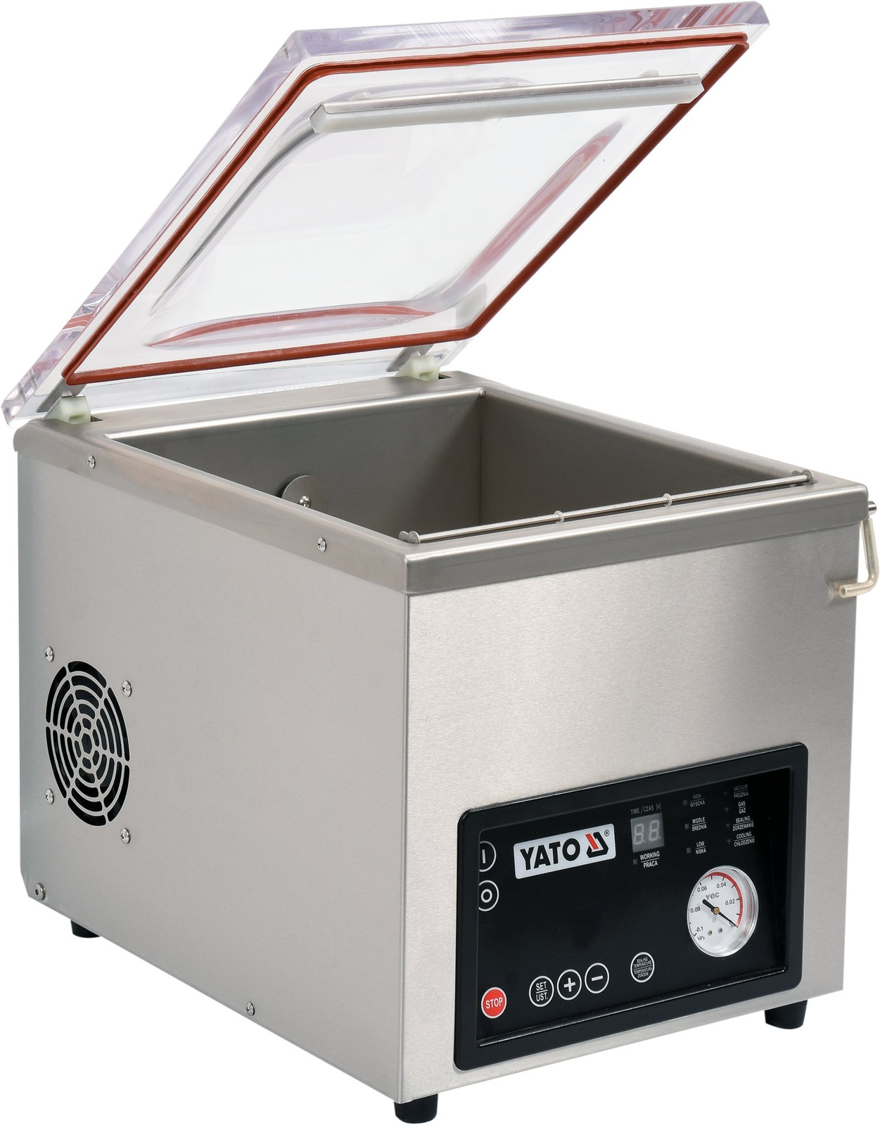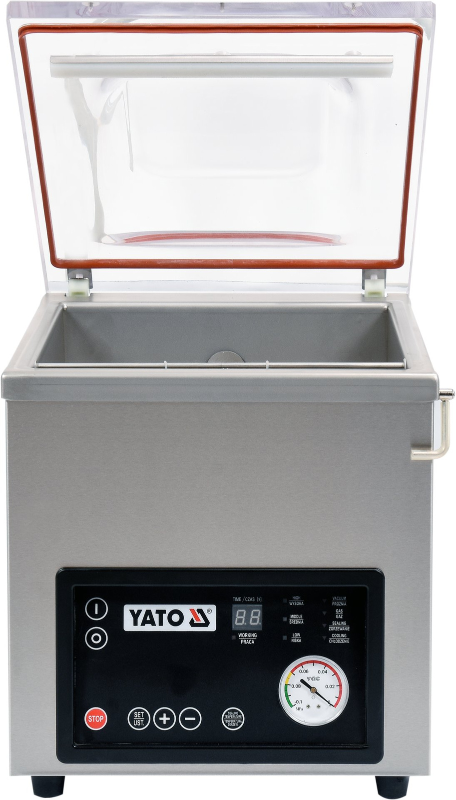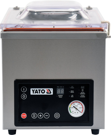 Mașină de ambalat în vid cu cameră de la YATO cu lungimea barei de etanșare de 30 cm. Permite ambalarea în vid a alimentelor, ceea ce întârzie eficient procesele de oxidare și dezintegrare, garantând prospețime mai îndelungată. Produsele conservate pot fi păstrate în frigider sau congelator pentru o perioadă lungă de timp, minimizând pierderile și eliminând necesitatea aruncării alimentelor neconsumate. Ambalarea în vid este ideală pentru marinarea preparatelor, deoarece prin eliminarea accesului alimentelor la aer, procesul de marinare devine mai eficient, iar gustul preparatelor mai intens.