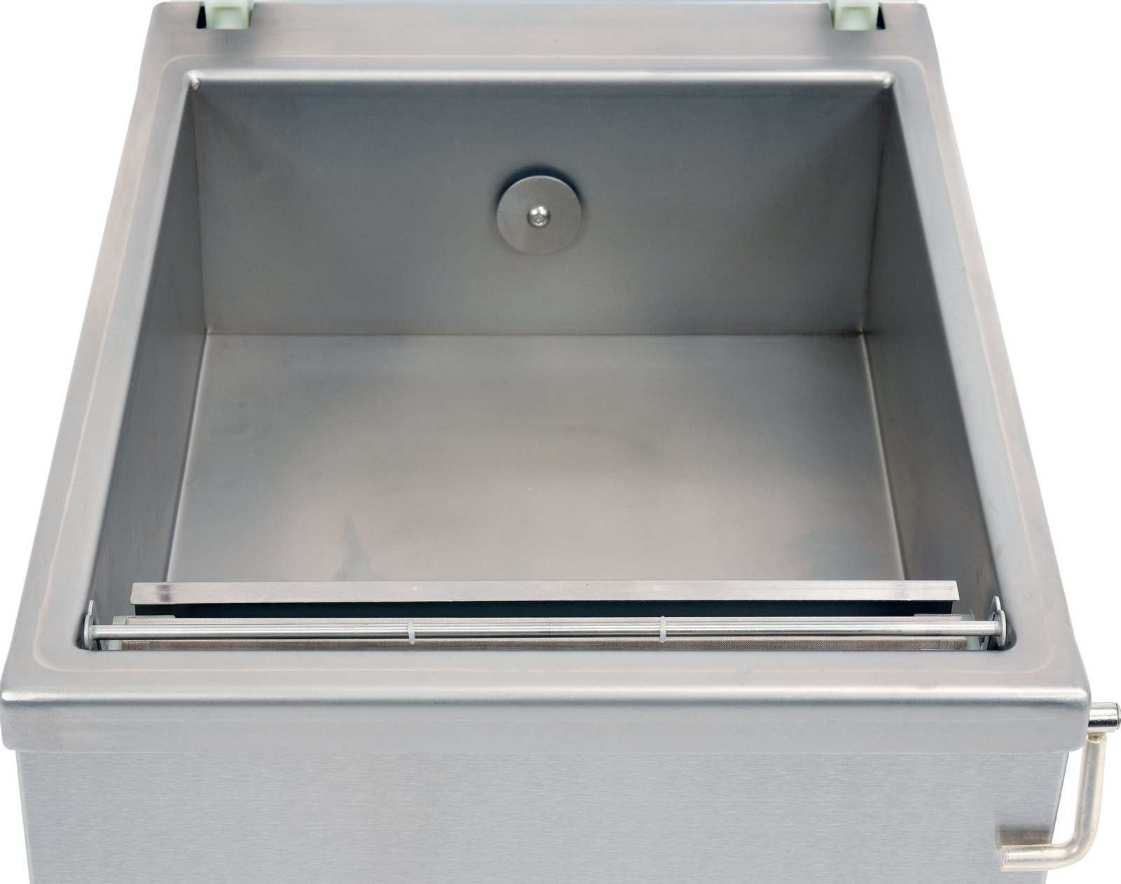 Camera de vid din oțel inoxidabil gros, cu dimensiunile de 37x32x13,5(18,5) cm asigură soliditate și durabilitate.Capacul are o adâncitură care crește suplimentar înălțimea camerei de la 13,5 cm la 18,5 cm, permițând ambalarea unor produse mai mari. Formele rotunjite facilitează menținerea curățeniei camerei. Capacul, realizat din material plastic solid, permite monitorizarea procesului de ambalare, iar culoarea transparentă facilitează suplimentar controlul. Mașina de ambalat este ușor de utilizat, datorită procesului complet automat de ambalare, reglării timpului de sigilare, afișajului digital clar și indicatorului de presiune, care oferă control total asupra procesului.