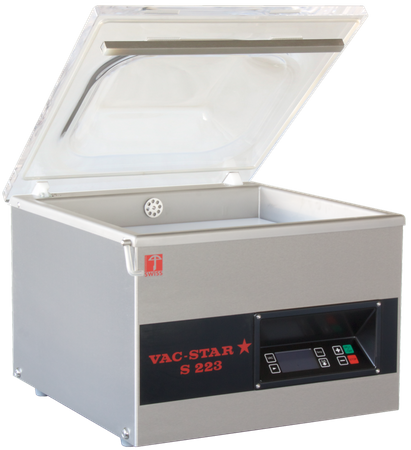 Pachetă de vidare de masă S-223 SX marca VAC-STAR este un echipament profesional conceput pentru gastronomie și industria alimentară. Datorită sistemului avansat de control și construcției solide, modelul S-223 SX este ideal pentru restaurante, catering și alte unități gastronomice, garantând fiabilitate și confort în utilizare.