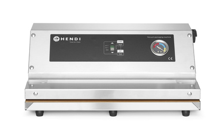 Mașină de ambalat în vid cu sistem de "aspirație externă" fabricat din oțel inoxidabil. Unitatea are o pompă profesională și un manometru de vid. 2 programe automate și un program manual. Timp de etanșare reglabil și afișaj digital. Ambalatorul are capacitatea de a aspira 15 litri de aer pe minut datorită unei pompe de vid umplute cu ulei.