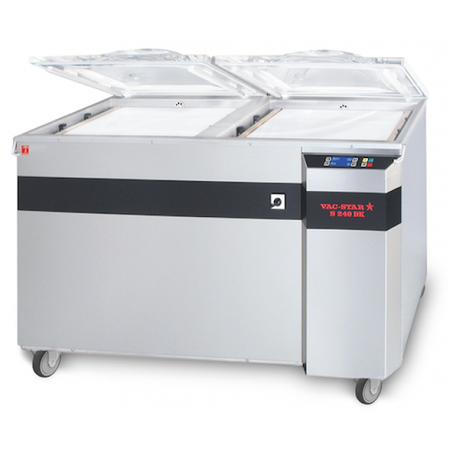 Mașină de ambalat în vid cu două camere S 225 DK PX de la compania elvețiană VAC-STAR este un dispozitiv avansat dedicat unităților gastronomice, de producție și de procesare profesionale. Datorită celor două camere, acest model se remarcă prin eficiență excepțională, permițând ambalarea simultană a unor porții mari, de până la 10 kg în fiecare cameră. Construcția glisantă facilitează operațiunile de ambalare, iar posibilitatea de salvare a parametrilor permite adaptarea la o gamă largă de produse, ceea ce face dispozitivul ideal pentru ambalarea atât a alimentelor, cât și a semifabricatelor.