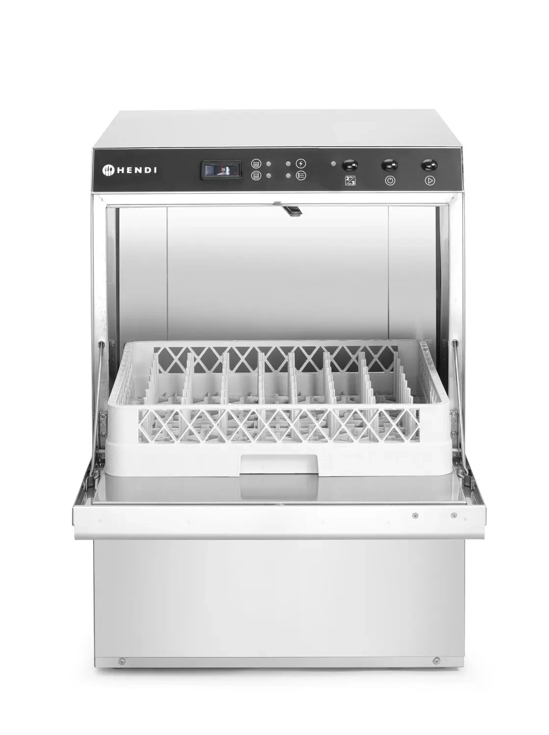 Mașină de spălat vase profesională Doppio cu dozator de detergent și pompă de evacuare 230/400 V HENDI 237366