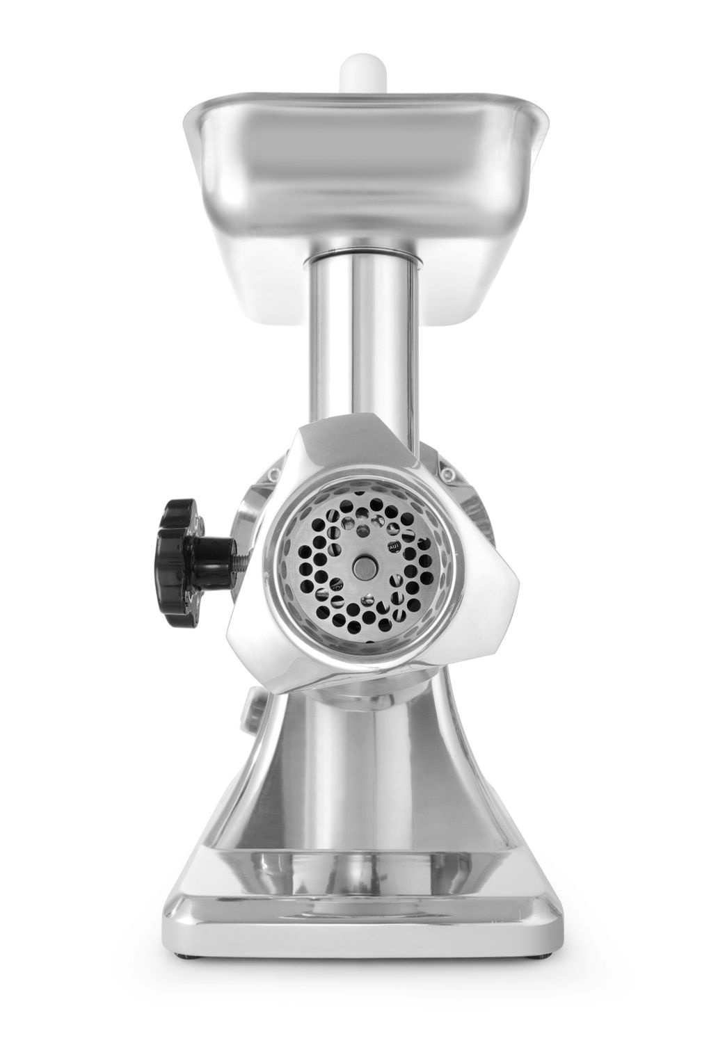 Mașina de tocat carne (wilku) Hendi 12 este un dispozitiv pentru mărunțirea cărnii crude sau fierte, cu o productivitate orientativă de 200 kg/oră. Corpul mașinii este realizat din aluminiu lustruit, iar partea de lucru și pâlnia – din oțel inoxidabil. Pentru siguranța utilizatorului, este inclus un împingător. În set este inclusă și o sită cu diametrul de 7 cm și găuri de 6 mm.