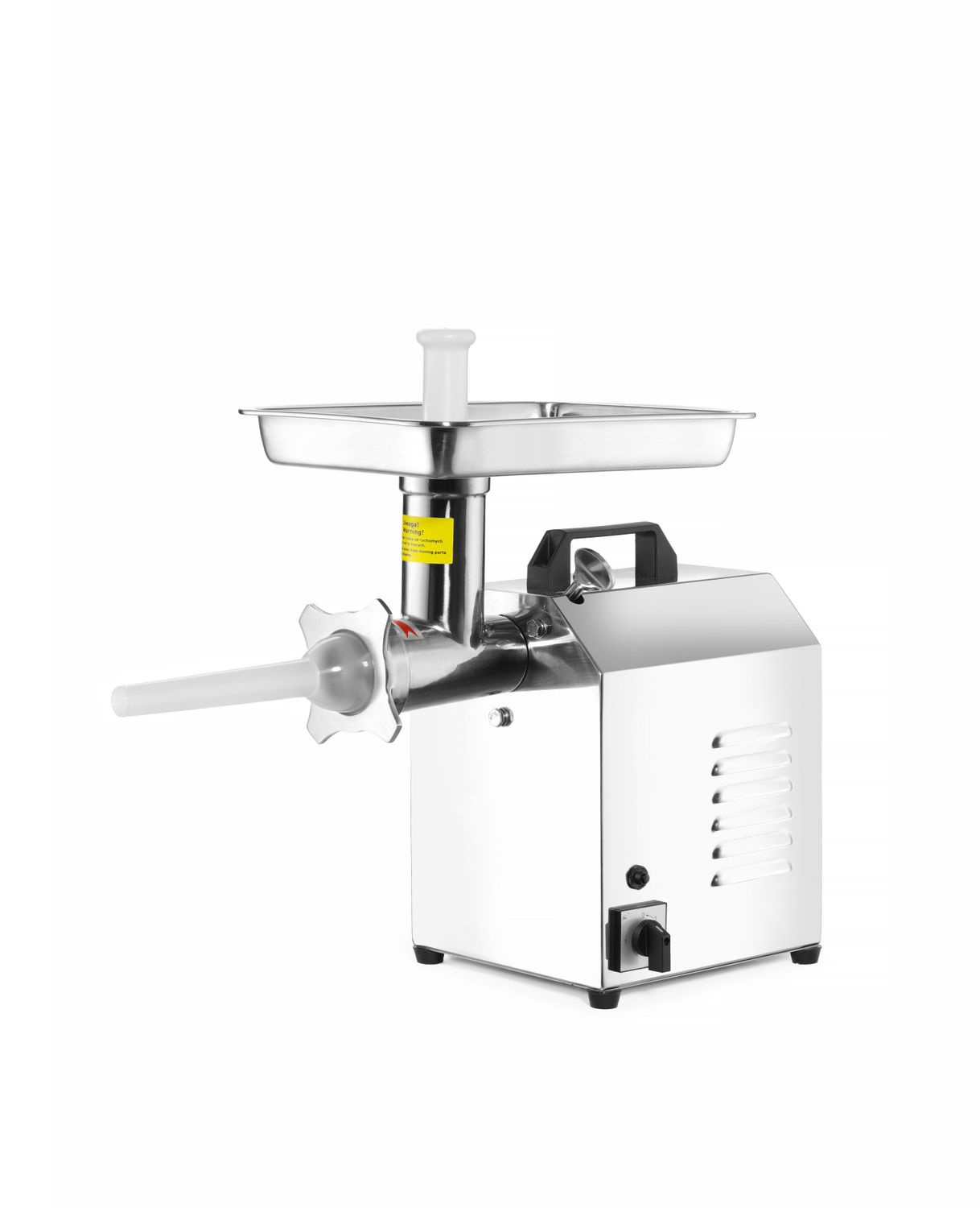 Mașină profesională de tocat carne din gama Top Line destinată măcinării tuturor tipurilor de carne fără oase și piele. Carcasa este realizată integral din oțel inoxidabil de înaltă calitate, lustruit. Gât detașabil din oțel inoxidabil chirurgical 304 18/10. Demontarea simplă a gâtului și a tuturor pieselor interne facilitează curățarea aparatului. Motor cu protecție la supraîncălzire. Funcție de revers în caz de blocare a gâtului. Buton de resetare pentru protecția dispozitivului împotriva supraîncărcării. Mâner comod de transport pe partea superioară a carcasei. Picioare antiderapante.