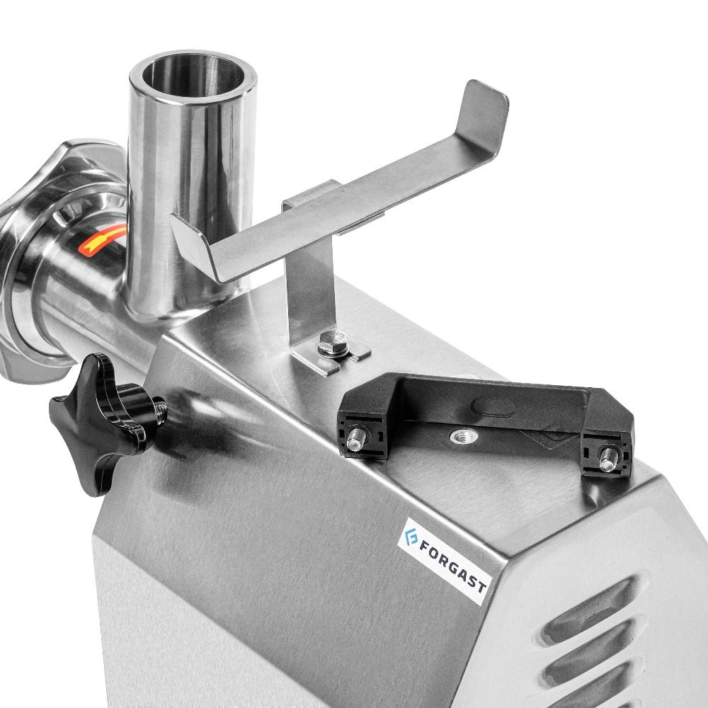 Mașina profesională de tocat carne Forgast este un dispozitiv eficient destinat mărunțirii cărnii și legumelor, atât crude, cât și fierte. Acest model se remarcă prin construcția sa compactă, carcasa din oțel inoxidabil și o eficiență de până la 80 kg de carne pe oră. Este ideală pentru unități gastronomice mici și mijlocii, magazine de carne și localuri care servesc preparate din carne tocată.